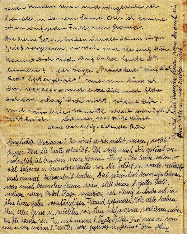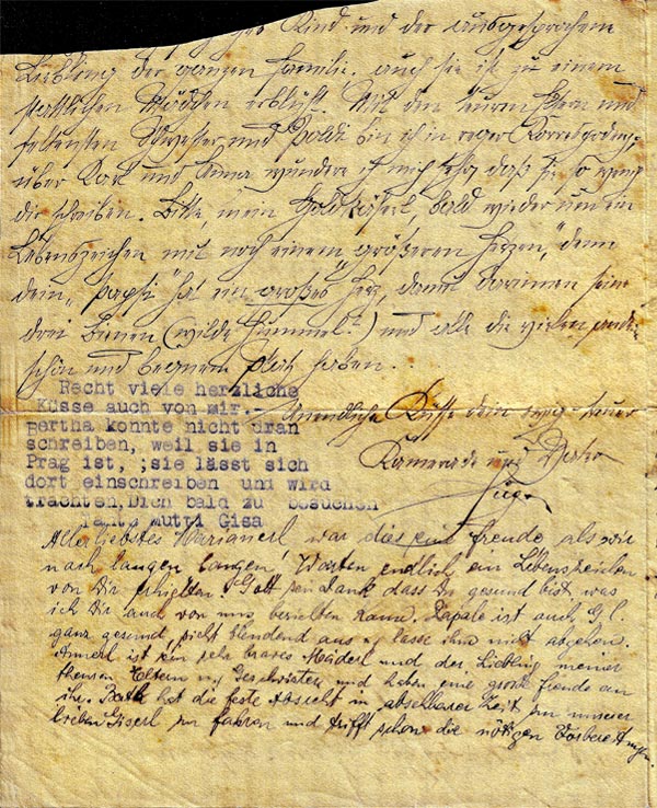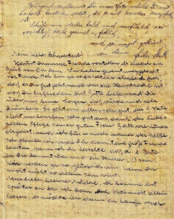 and I kiss you sincerely, from your Mama-Fritzi My dear sister! Can you imagine our joy when a letter from you arrived at last. |