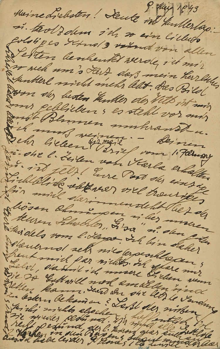 Anna writes of still mourning the (1941) loss of her mother and of her feared loss of her older siblings, Gisela and Hugo, and of Hugo’s younger daughters. However, Anna also expresses hope and faith that her siblings and nieces may still be alive and that she will be able to save them. In addition, Anna mentions some aspects of her current life in Australia, such as the family’s good health and their celebration of Mother’s Day. |