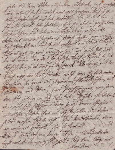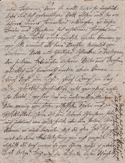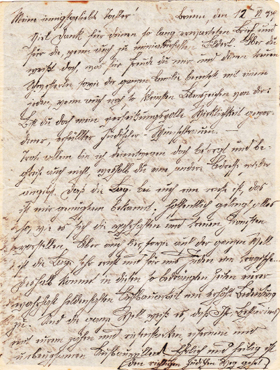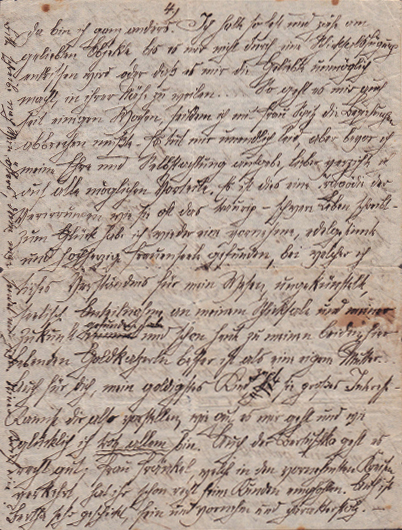 delusion? Isn’t Lussinka a bit similar to you in that respect? Out of sight, out of mind? [next page] I am quite different in that respect. I hold firmly and tenaciously onto the object of my love, so that it cannot be torn from me by a turn of fate or until my beloved makes it impossible to remain near her. That is how I have felt for several weeks since I had to break off my relationship with Mrs. Spitz. I am very sorry, but before I sacrifice my honor and self-respect, I would rather sacrifice all possible advantages. This is a tragedy of errors, as is often written in these sad, difficult times. Luckily, I have again found a high-minded, noble and proud womanly soul with whom I have found complete understanding of my being and genuine understanding and sympathy for my destiny and future, and who now treats both my sweet kittens5 who live here better than their own mother. She also takes great interest in you, my dear child. You can imagine how well things are going for me and how happy I am in spite of everything.6 Bertuschka is also doing quite well. Mrs. Fränkel, who travels in the most elegant circles, has already recommended quite genteel customers to her. Bertha is also very handy, refined and genteel, and has a proud character. [side of p. 4] Please write to Vienna – often – as not all of your letters are forwarded. [side of p. 2] Your news is highly interesting and I immediately showed it to Leo Pollak (the leader of the Bethars). |