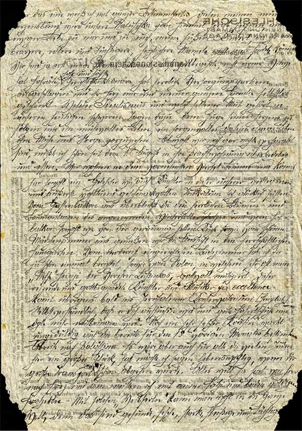 9. “Fratzeln” is the diminutive for “Fratzen” which means “baggage,” noted M. Swatek, the transcriber of this letter. It is also idiomatic for “silly little girls.” Hugo may or may not have intended a humorous ‘double-entendre’ here between his ‘silly little’ daughters and ‘baggage’on his journey to Palestine with his new wife.