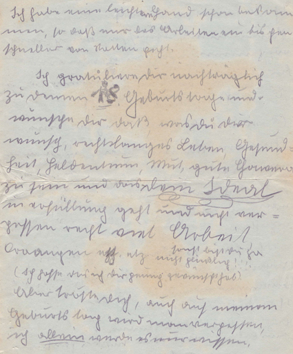 Berta writes lofty, idealistic 18th birthday wishes for her older sister Gisella Nadja, and for herself too. Berta also gives a spirited report of her recent bicycle accident, symbolic resistance, work and studies. |