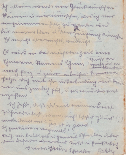 2. Here, near the end of Berta’s humorous and somewhat disjointed narrative, it seems likely that the Sütterlinstube transcribers are correct in suggesting that what Berta meant by “Friede ? dar-über” (lit. Peace? over it), was closer to the meaning of the German expression, “Schwamm drüber,”: “ let’s forget about it.”