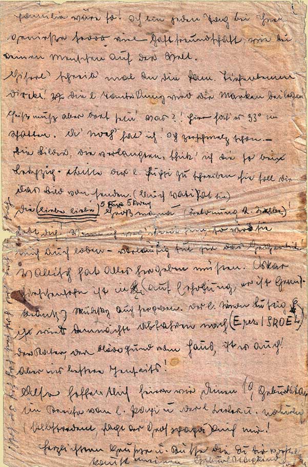 travel to (Erez ISRAEL!`)6 The stupid cat of the house also departed, but to the So, hopefully, we’ll celebrate your 19th birthday in the company of dear Papi and dear Bertel and naturally (of course, grandpa says) and me! Heartfelt greetings and kisses that you must imagine, birthday child. Luch [?] or Lous [?]7 [written along the left side:] high high high high high high high high Three cheers!8 |